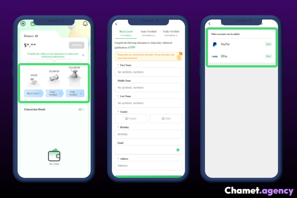 Los agentes de Chamet pueden retirar su comisión una vez que las ganancias acumuladas alcanzan el umbral mínimo de pago.