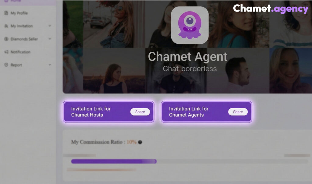 Los agentes reclutan anfitrionas utilizando enlaces de invitación generados desde el panel de Chamet Agency.